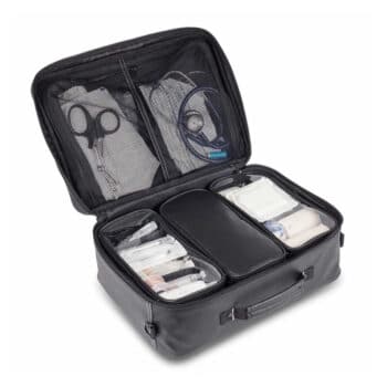 Medicinska / liječnička torba od kože tradicionalnog dizajna. Njezina kompaktna veličina omogućava korisniku da nosi osnovni materijal za osnovne medicinske intervencije ili kućne posjete. Ova torba zdravstvenim djelatnicima donosi dašak elegancije i profinjenosti.