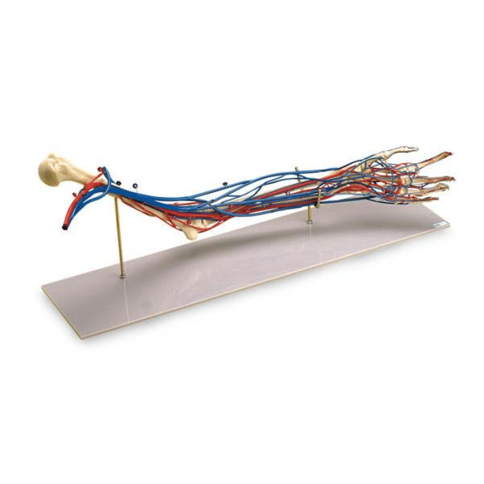 Ovaj model u prirodnoj veličini prikazuje potpuni krvožilni sustav ruke i šake. Izvrsno nastavno sredstvo za trening venepunkcije.